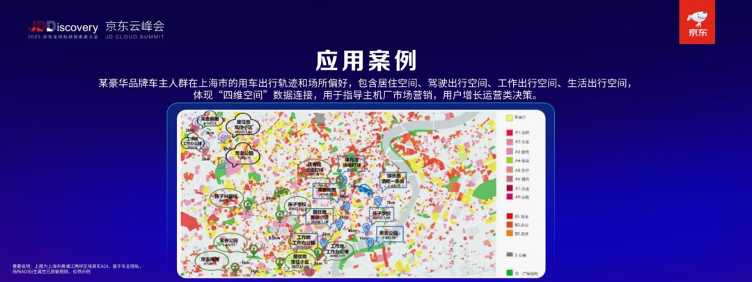 以某豪华品牌为例,该品牌利用车联网技术和AOI智能分析,获取了在上海市的车主人群的用车出行轨迹和场所偏好数据。这些数据包含了车主的居住空间、驾驶出行空间、工作出行空间和生活出行空间,形成了一个全面的“四维空间”数据连接,为车企的市场营销和用户增长运营决策给予了重要的参考。